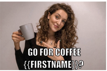Have someone take a picture of you (Not a fan of “selfies”) and then use your app to turn it into an appropriate meme, like this one where the SDR was suggesting a virtual cup of coffee.